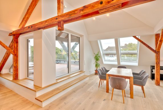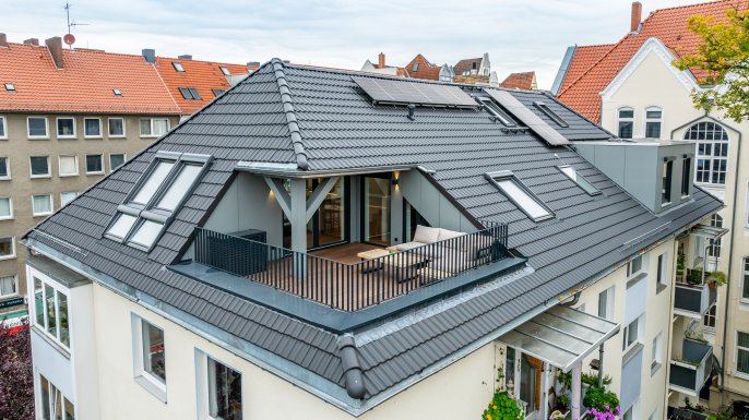 Diesen Traum vom Wohnen über den Dächern der Stadt mit Blick in die Eilenriede haben sich unsere Bauherren hier erfüllt. Auf ca. 200 m2 mit großzügiger Loggia versteht man schnell, dass Hannover einfach einer der schönsten Orte zum Leben ist.