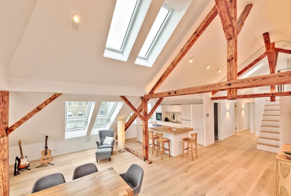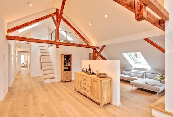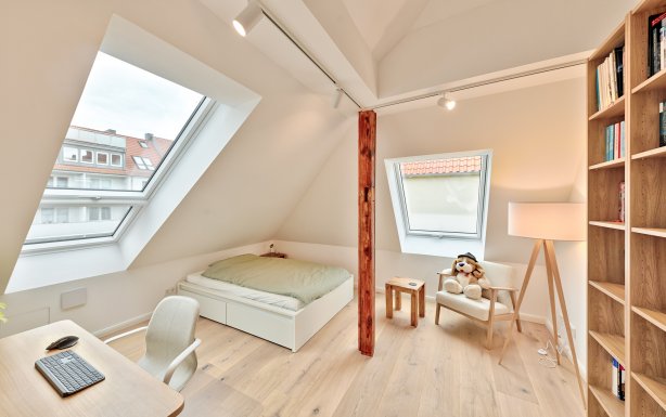 Gauben- und Dachfflächenfenster erhellen nun den Wohnraum.