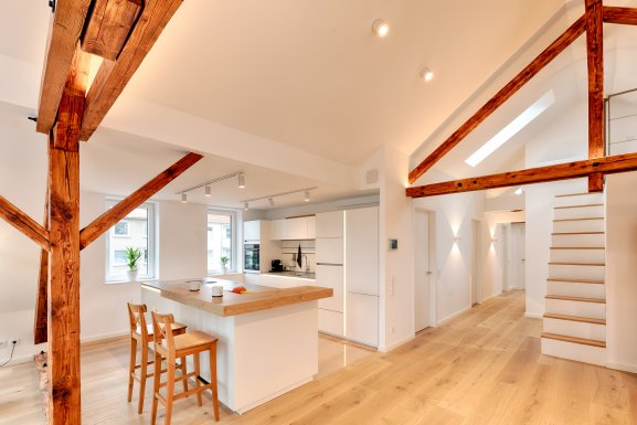 Für diesen Ausbau wurde nachhaltig gerechnet und hier sei ein besonderes Lob an unsere Statiker der Rosenbusch Ingenieure ausgesprochen, die jedes Kilogramm doppelt und dreifach hin- und hergerechnet haben. Das Ergebnis kann sich sehen lassen: