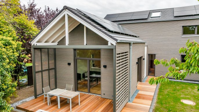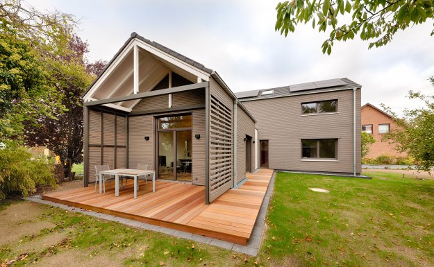 Wenn der Anlass das gemeinsame Wohnen dreier Generationen auf demselben Grundstück ist, wird eine neue Bauweise mit einer alten bewährten Wohnform rekultiviert: